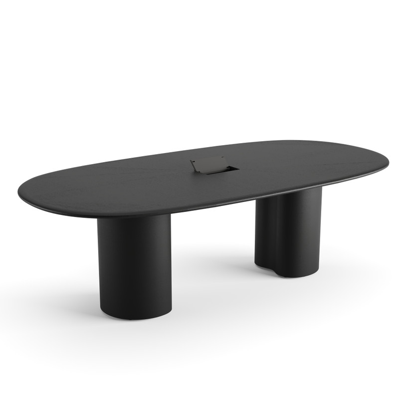 Pisarniška različica mize je opremljena z napajalnikom s snemljivo loputo in kanalom za kable, vendar še vedno ohranja čist in eleganten videz. Miza z dvojnim dnom in ovalno mizno ploščo s fiksno sredinsko odprtino (debelina 2,5 cm). Za manjšo različico je značilna funkcionalna velikost v organski obliki, ki se dobro prilega majhnemu prostoru in ozkemu kotu v dnevnih sobah, hotelskih sobah in domačih pisarnah.